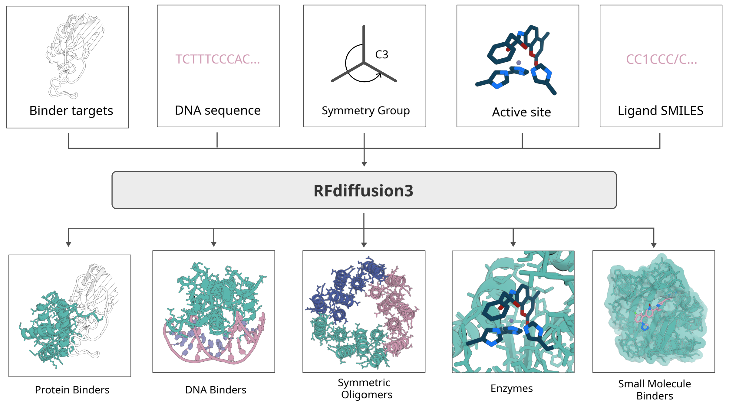 Image and Model Source: Butcher J, Krishna R, Mitra R, Brent RI, Li Y, Corley N, Kim PT, Funk J, Mathis S, Salike S, Muraishi A, Eisenach H, Thompson TR, Chen J, Politanska Y, Sehgal E, Coventry B, Zhang O, Qiang B, Didi K, Kazman M, DiMaio F, Baker D. De novo Design of All-atom Biomolecular Interactions with RFdiffusion3. bioRxiv [Preprint]. 2025 Nov 19:2025.09.18.676967. doi: 10.1101/2025.09.18.676967. PMID: 41000976; PMCID: PMC12458353.